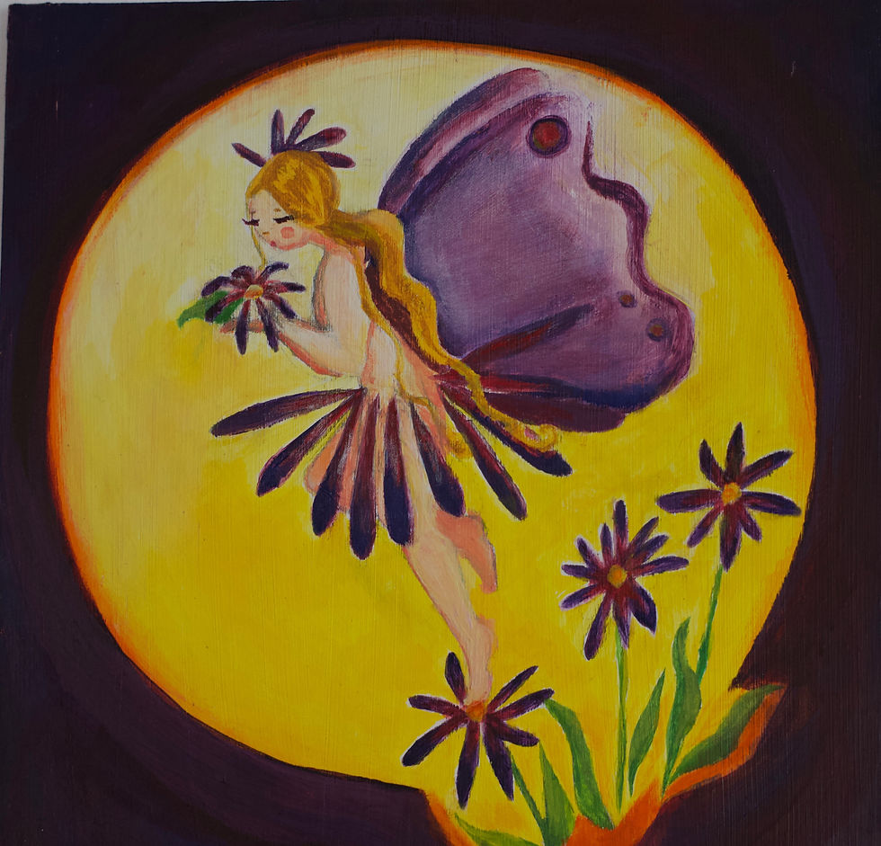 Purple Daisy Fairy Original Painting 16" x 17"
